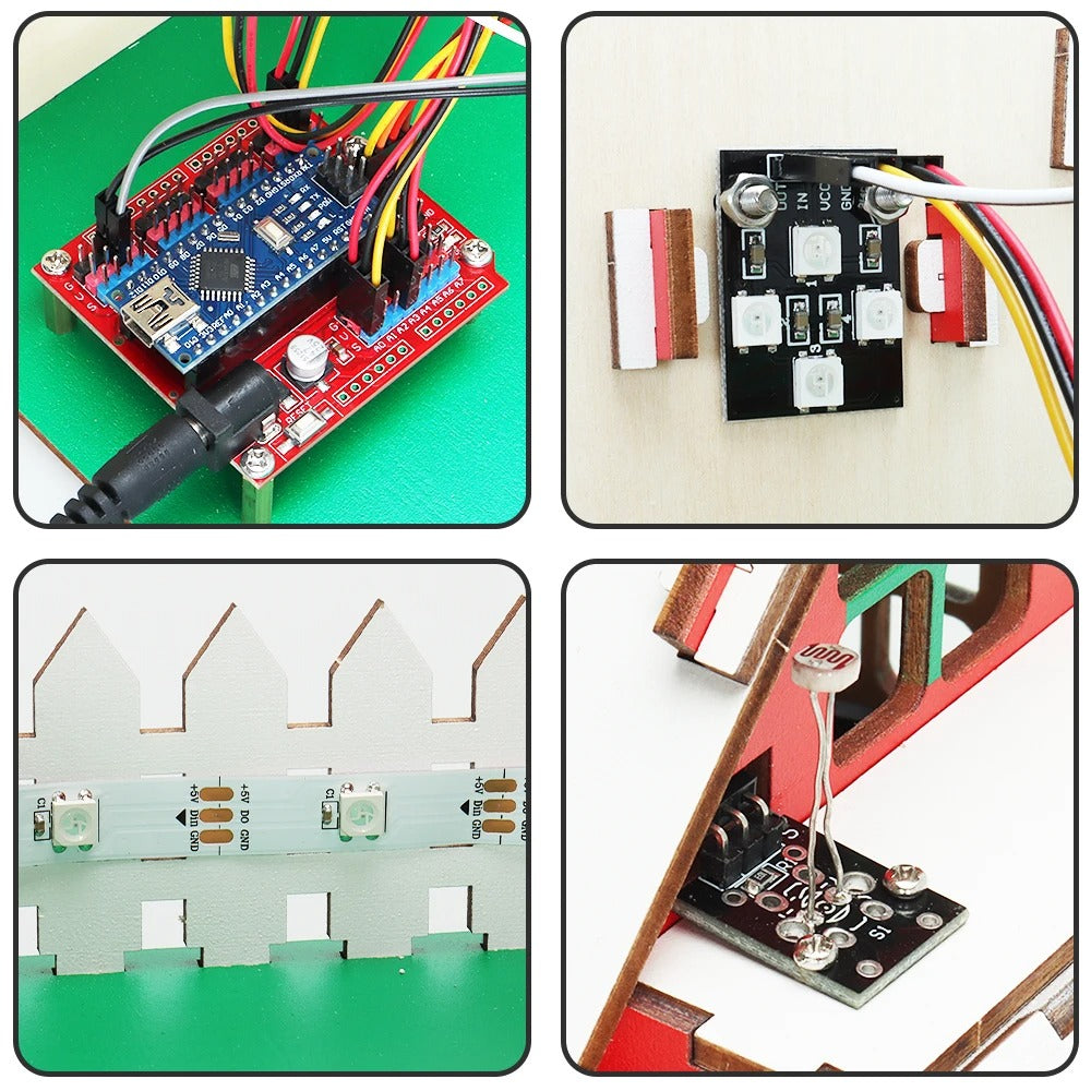 This DIY wooden smart house combines festive design with interactive electronics and Arduino-compatible programming. Featuring LED lighting and sensor modules, it offers a fun, hands-on way to learn coding and IoT basics. Perfect for holiday gifts, STEM classrooms, or creative family projects, this smart Christmas cottage brings both education and festive cheer to your desk or display.